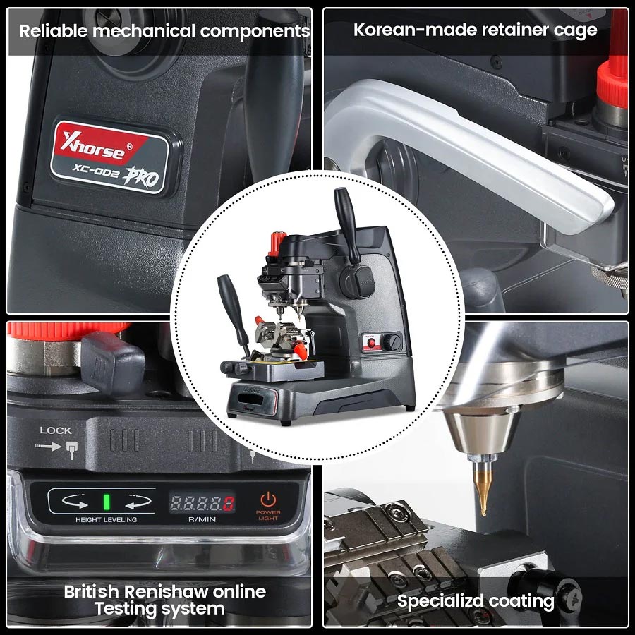 Reliable and Long-Lasting Components The machine is built with a reliable mechanical structure, ensuring durability and consistent high-performance key cutting. The cutter, made from Japanese raw materials with specialized coating, guarantees a long service life. The German-made DMG CNC machining used for the main components ensures that the XC-002 Pro delivers high-precision results every time.
