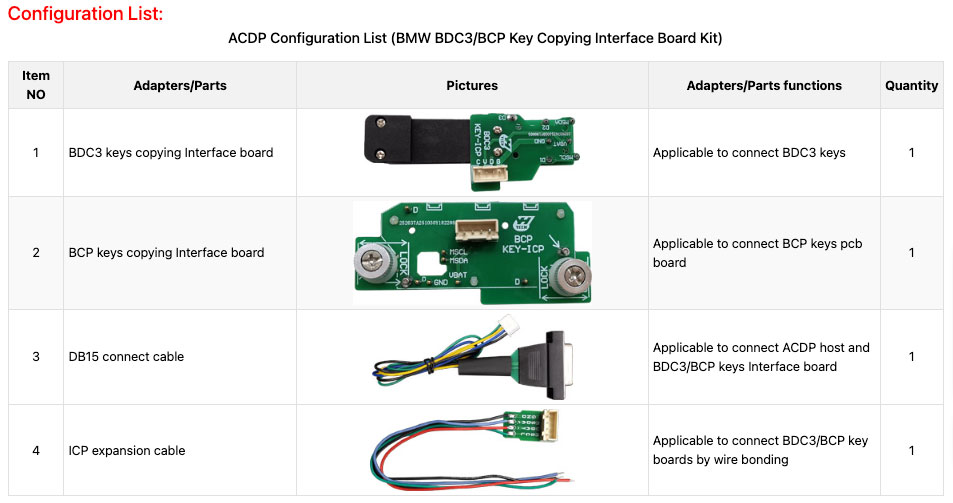 ACDP BMW BDC3/BCP Key Copying Interface Board Kit