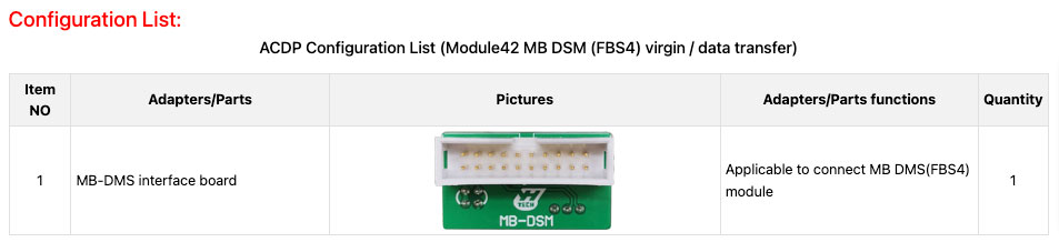 ACDP Module 42 for Mercedes-Benz DSM (FBS4) Virgin & Data Transfer