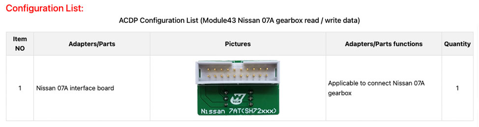 ACDP Module 43 for Nissan 07A Gearbox Read & Write Data