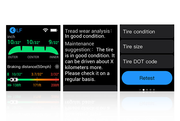 - Displays Recommendations for Tire and Brake Disc Replacement, 4-wheel Alignment and Tire Rotation