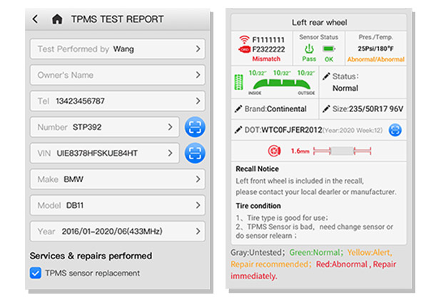 | Comprehensive Test Report Comprehensive Test Report: TPMS health, Tire tread depth & brake disc wear characteristics (Requires ITS600) |