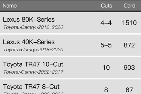 Easy and Effective Search Find your key type in 6 different ways: (1) vehicle search by year/make/model (2) keyword search using Ilco EZ or Silca key names (3) search by Triton/Black Widow card # (4) search by HPC Blitz card # (5) search by Instacode card # (6) use the Favorites menu for the FASTEST way of getting to your most commonly used keys. |