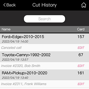 Cut History All of your work is saved to your Cut History for easy reference later, including the key type and the cuts you used, all shown in chronological order. Yes, you can delete individual records if you need to. NEW: Now you can add notes like customer number, VIN, or invoice number to search for later. ADDED BONUS: Use the same mobile device across multiple machines (including Tritons!) and you have access to all of your Cut History, no matter which machine you cut it on! |