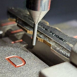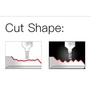 Choose Between Plunge or Contour Cutting Contour cutting (sometimes called laser cutting) an edge-cut key can leave your key functional but looking funny. It will work just fine, and in fact it is much easier and faster to copy on a duplicator, but old ladies look at the key and think it won't work. The Black Widow gives you the option of plunge cutting, leaving your key looking like it was cut by a traditional cutting wheel. |