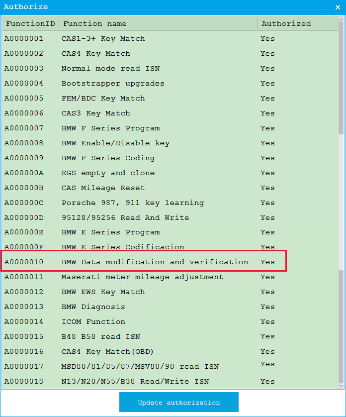 BMW Data modification and verification for CGDI Prog BMW MSV80 Key Programmer 1 Authorization A0000010