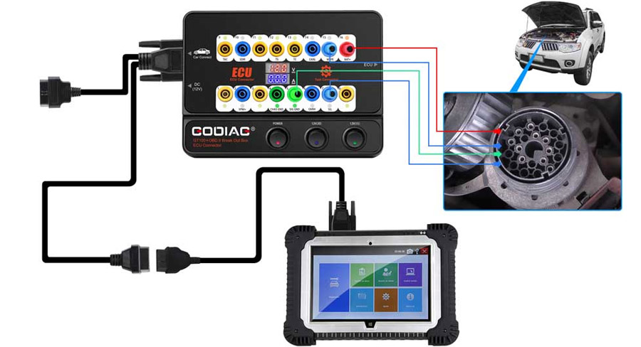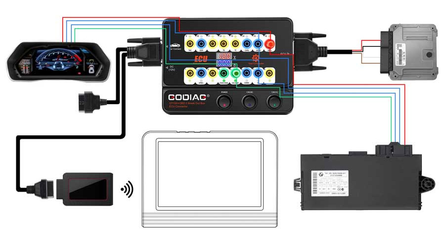 GODIAG GT100+, connected to a single ECU module, is convenient for a user to do the single-module diagnosis and programming.