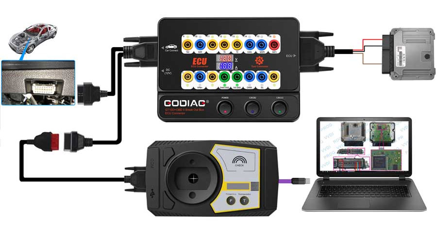 GODIAG GT100+ is the latest OBDII protocol communication detection and ECU maintenance/ diagnosis/ programming/ coding testing platform and after all the keys are lost, the instrument and the anti-theft system are forced to activate by short-circuiting.