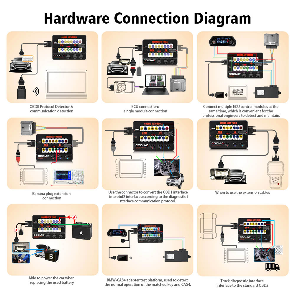 - Can work with most device to do test, will make your operation much easier , such as xhorse vvdi2, Autel Scanner, Launch Scanner, Vident Scanner, and so on.