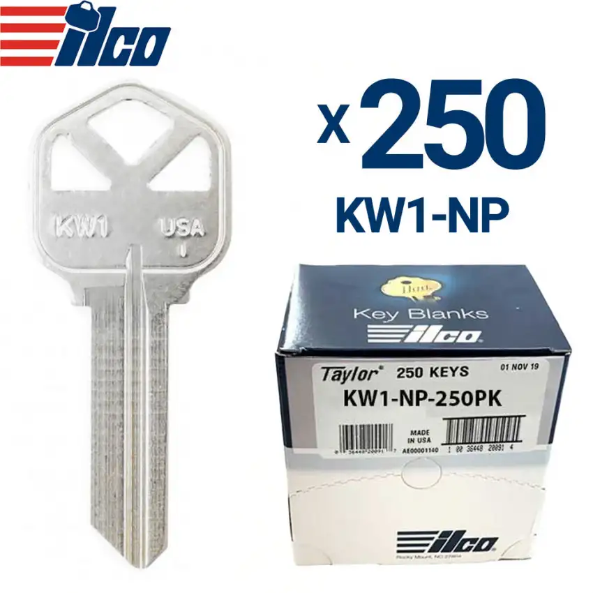 ILCO Nickel Plated Finish Key Blank KW1 Kwikset Pack of 250
