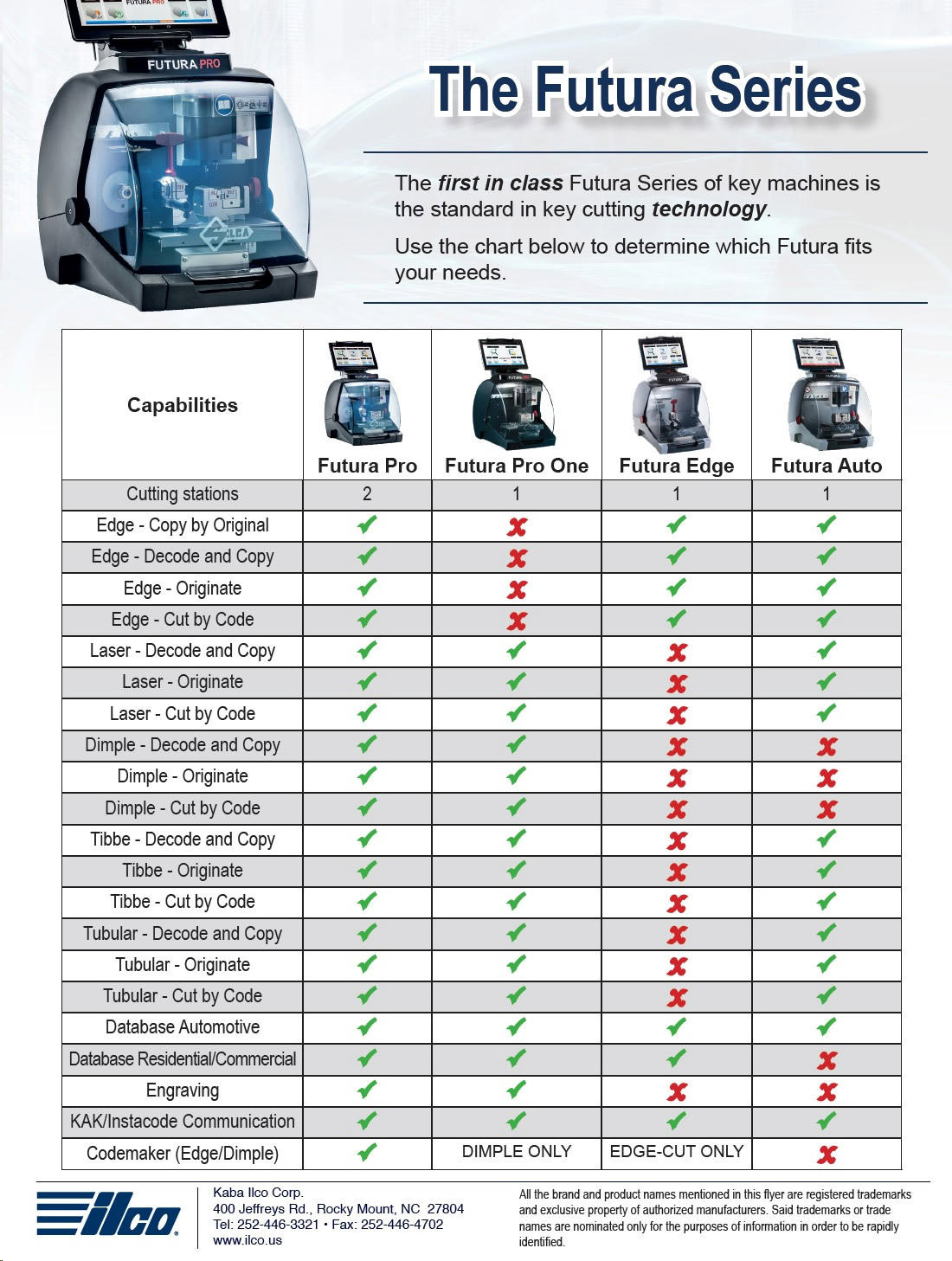 The Futura Pro is an upgraded version of the well-known Futura key cutting machine. It features dual cutting stations, which the original Futura was known for, but with faster cutting and improved software. The Futura Pro is capable of cutting various key types, including Edge-Cut, Laser-Cut, Cruciform, and Dimple keys.