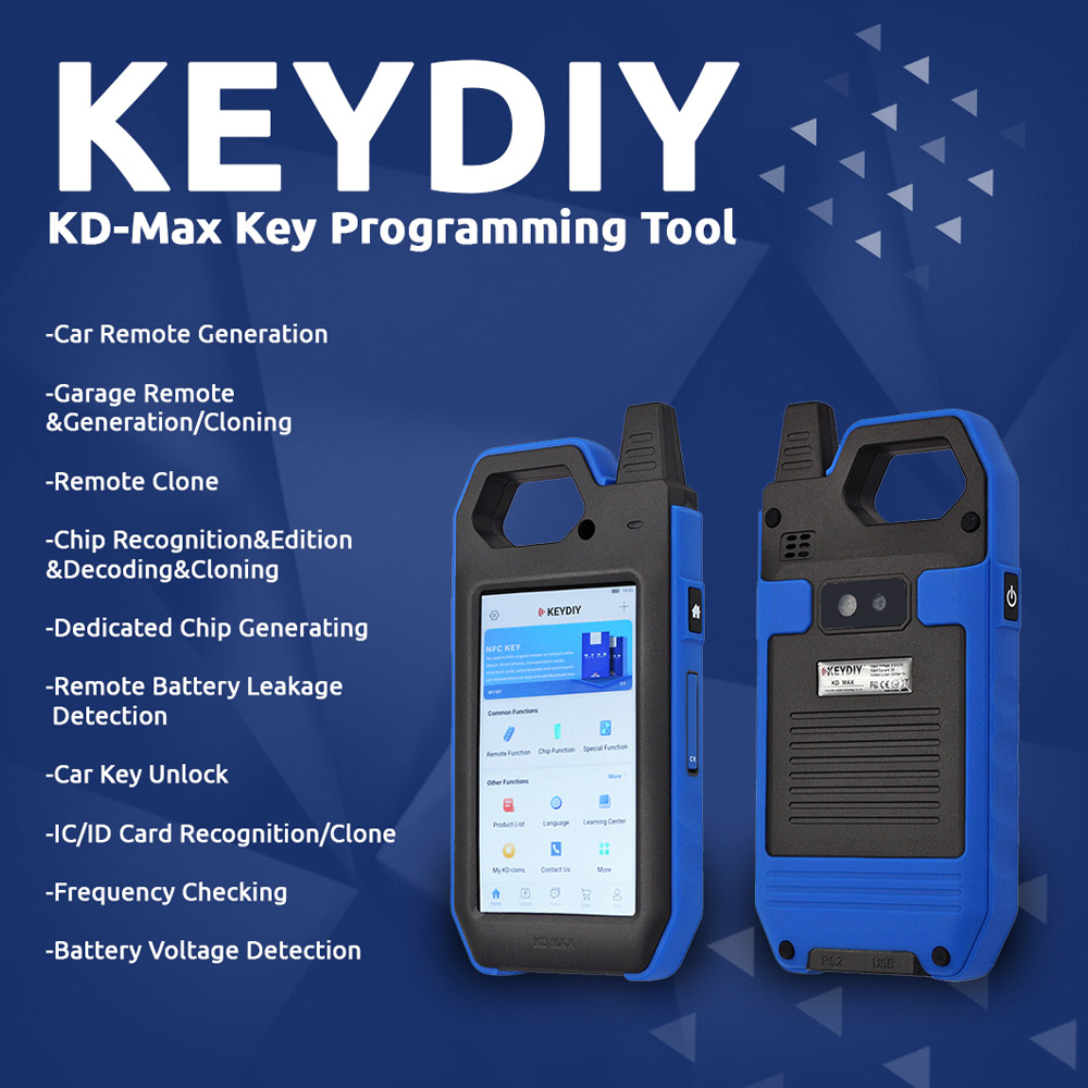 KD-MAX is a professional mutil-functional smart device. It works with Android system, built-in with bluetooth and WIFI module, equipped with 5.0 inch LCD display screen. The user-interface was clear, simple and easily manipulative. Device functions including Frequency Checking, Remote Generating, Remote Copy, Chip Recognition/Edition/Decoding/Clone, Dedicated Chip Generating, Chip Data Acquisition, Car Key Unlock, IC/ID Card Recognition/Clone, Online Program Generating, Battery Voltage Detection, Battery Leakage Detection, Online Updating. It is an essential professional locksmith tool.