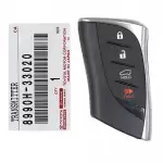This is a New proximity key with blue logo on the back for hybrid vehicles that fits Lexus ES300h (2019- 2020) the part number printed on the package is 8990H-33020 / 8990H33020 and the FCC ID is HYQ14FBF.
