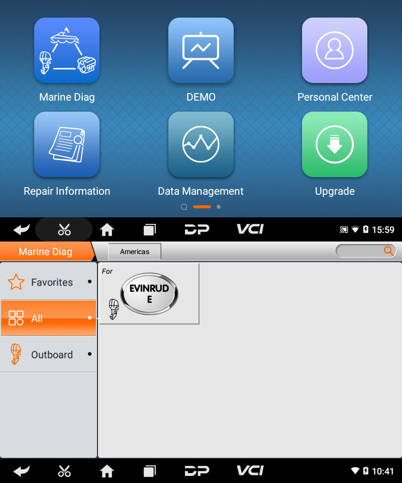 The ISCAN EVINRUDE (MARINE) is a portable tablet designed with high performance and an industrial-grade appearance, specifically for EVINRUDE. This next-generation intelligent marine diagnostic tool is tailored to meet the needs of customers. Powered by an RK3128 quad-core processor and featuring a 5.0-inch capacitive touchscreen, it delivers a professional and efficient diagnostic experience.