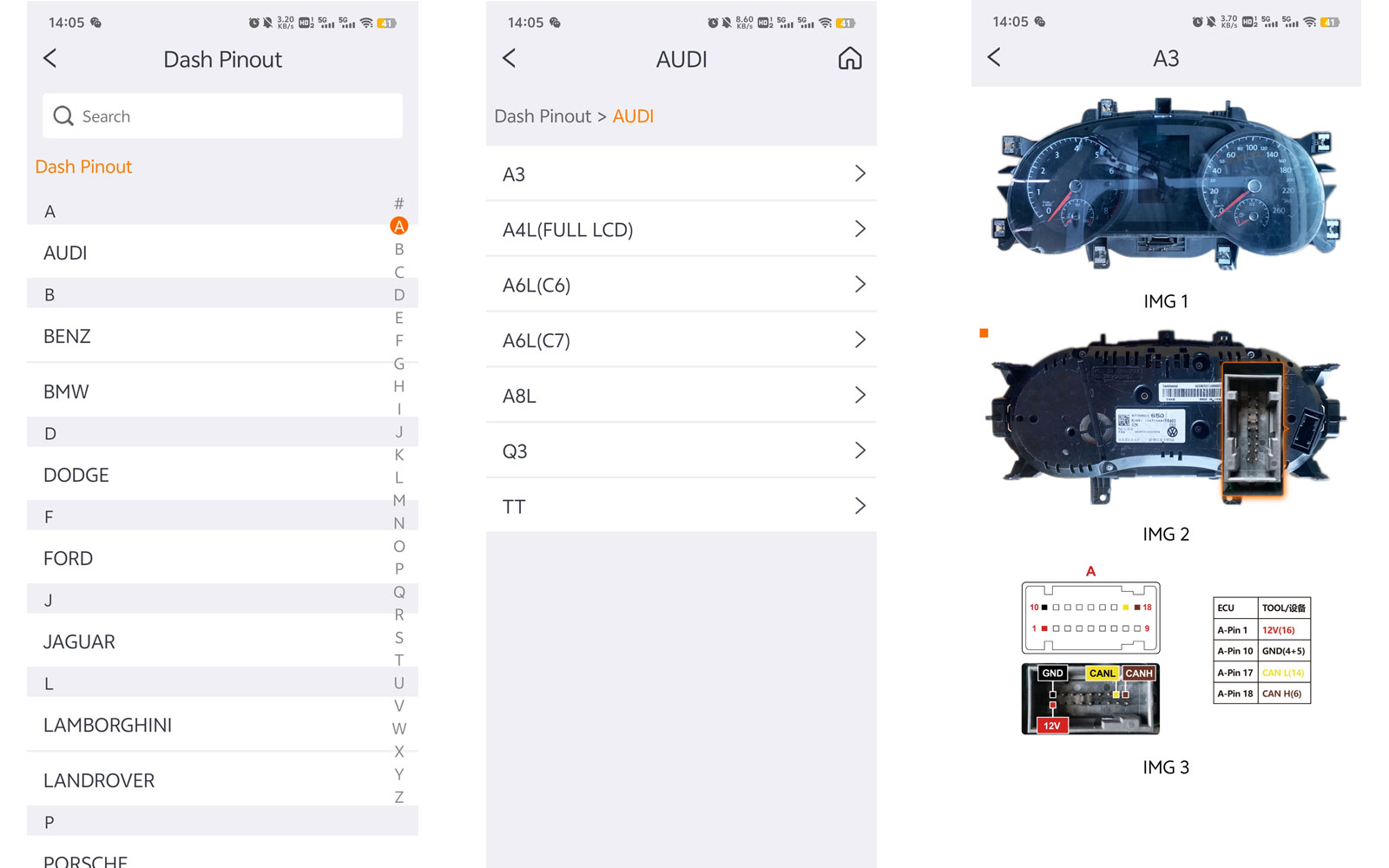 - Supports testing of components such as dash, audio, gear lever, and AC panels for brands including AUDI, BENZ, BMW, DODGE, FORD, JAGUAR, LAMBORGHINI, LAND ROVER, PORSCHE, ROLLS-ROYCE, VOLKSWAGEN, and VOLVO. For a complete list of supported functions, refer to the function manual, with more functions in development.