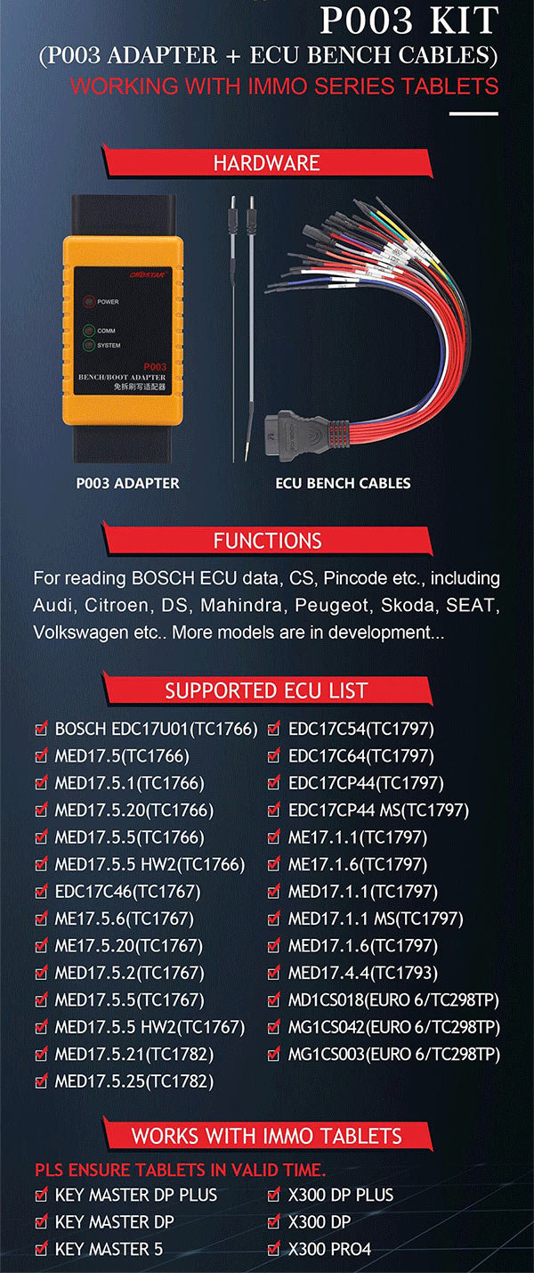 OBDSTAR P003 Adapter With ECU Bench Cables for OBDSTAR X300 DP / X300 DP Plus / DC706 / Key Master DP / X300 PRO4 / D800