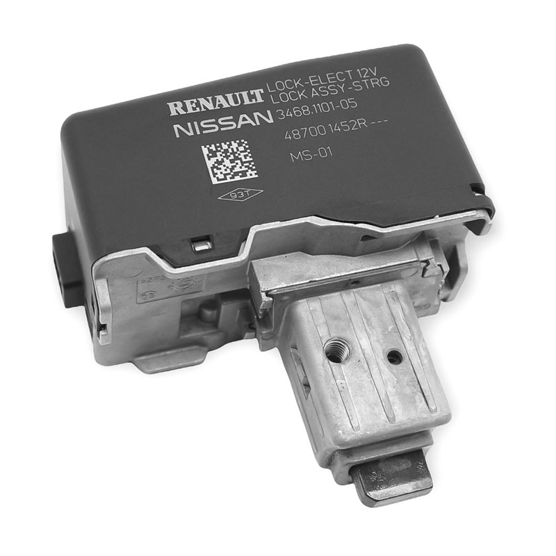 In such cases, a new ELV steering column lock must be installed and programmed into the vehicle. Steering lock problems are among the most common issues in Renault’s starting system.