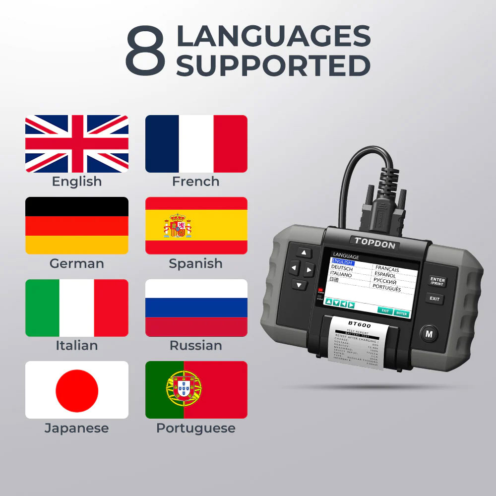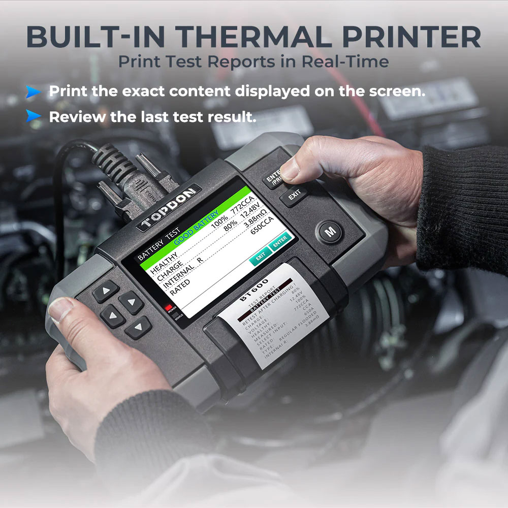 TOPDON BT600 Battery Tester & Built-in Printer for 12V Battery & 12V/24V Systems
