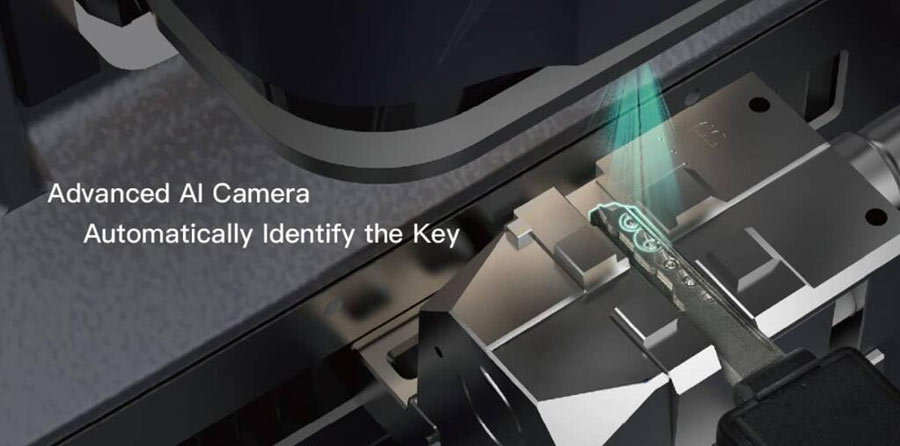Built-in camera automatically detects key types and the correct key position, with support for adjusting different key blank sizes.