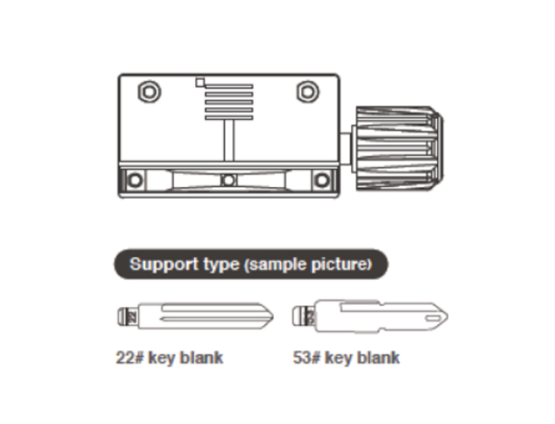 CONDOR XC-MINI PLUS machine standardly includes two clamps M1 and M2. Support sided, Track, Dimple and Tibbe Keys.