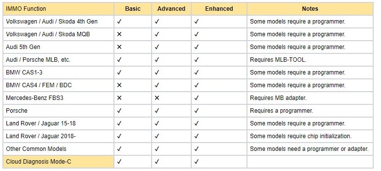 - Volkswagen / Audi / Skoda MQB IMMO functions
