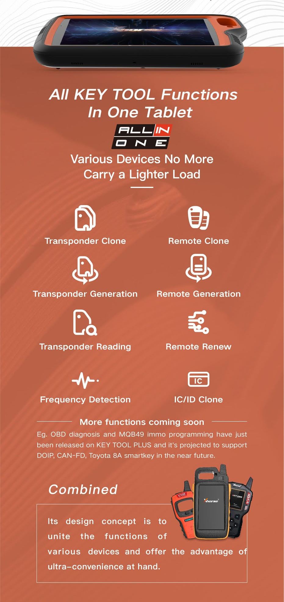 KEY TOOL PLUS provides an all-in-one automotive security solution for locksmiths that combines functions of VVDI2, VVDIMB, Key Tool Max, VVDI BIM, and VVDI PROG.