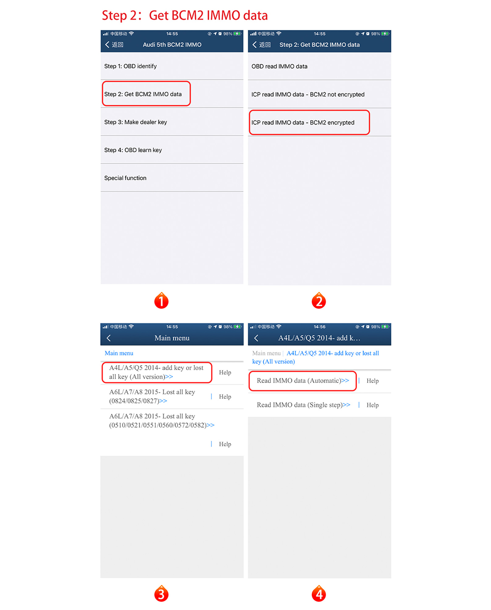- Supports Audi Gen5 encrypted version BCM2 to read immo data by ICP