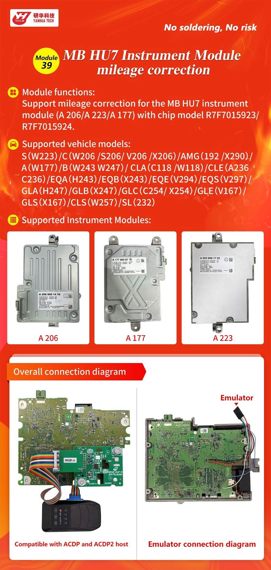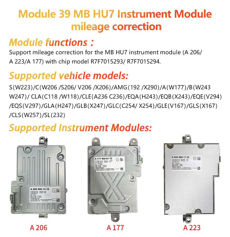 - Support mileage correction for the MB HU6 instrument module(A167/A213/A247) with chip model R7F701403, need Yanhua ACDP Module 37