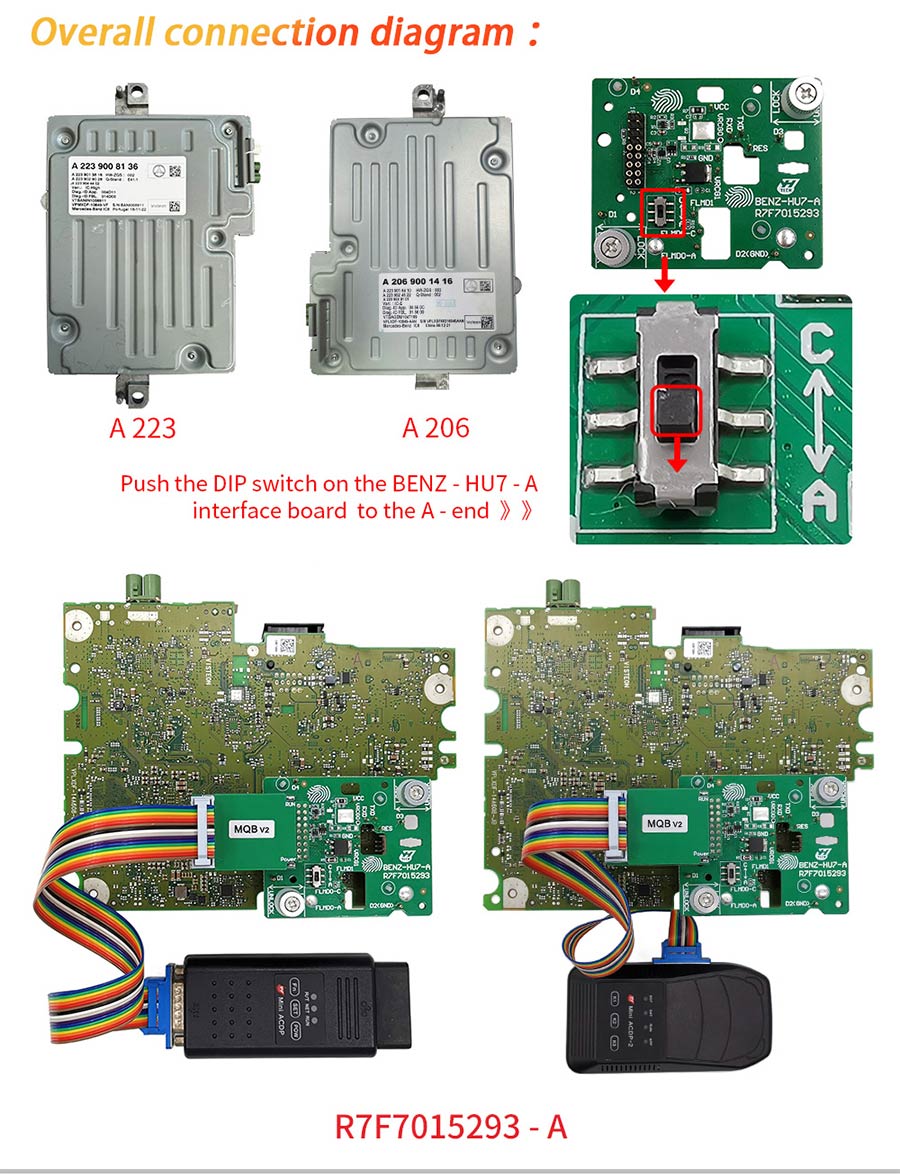 - The package comes with one MB HU7 Emulator by default, one car one simulator, the simulator is used to prevant black screen on dashboard, need to be soldered on car forever. If you need more, need buy extra(one pc MB HU7 Simulator/5pcs MB HU Emulators)