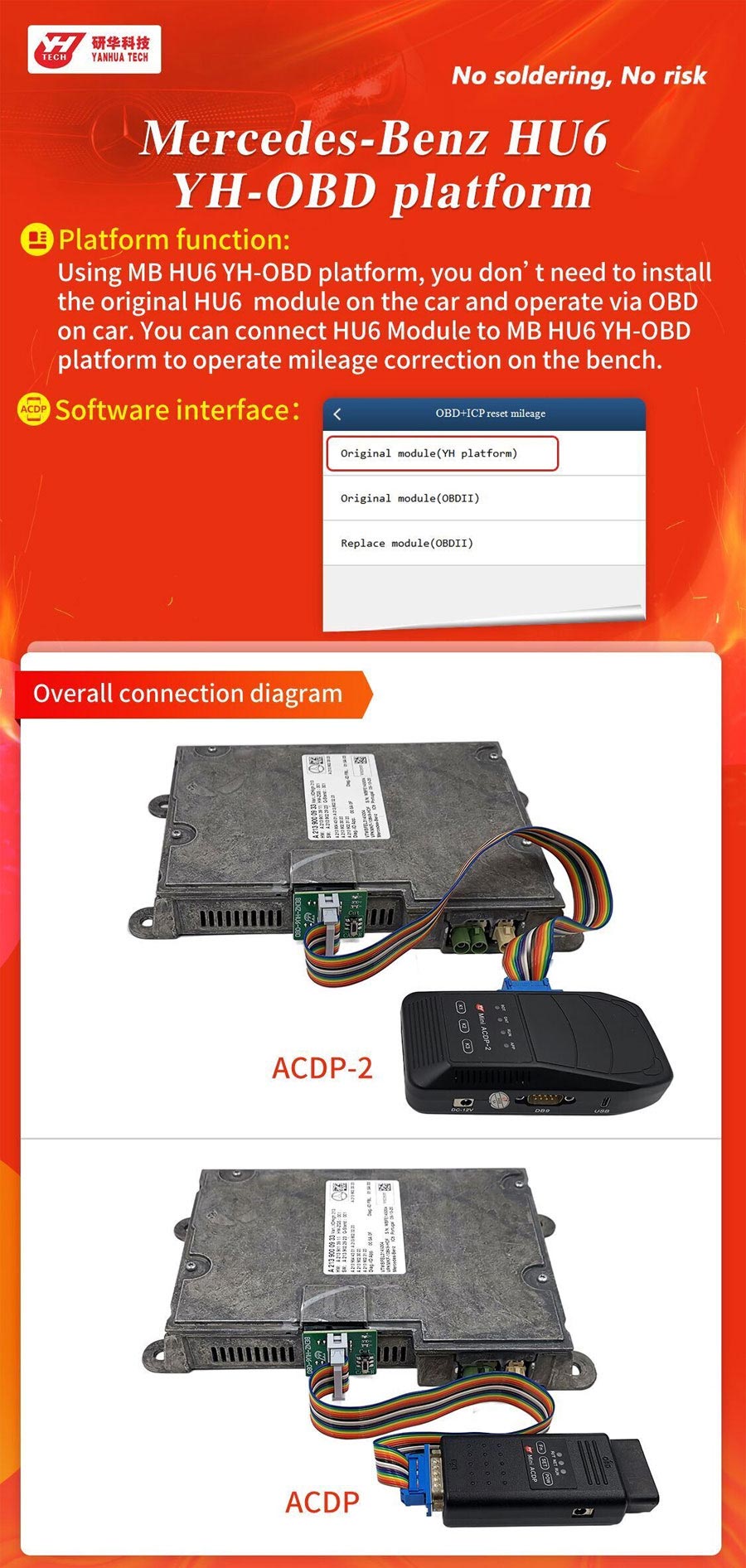1pc x YANHUA Mercedes-Benz HU6 YH-OBD Platform