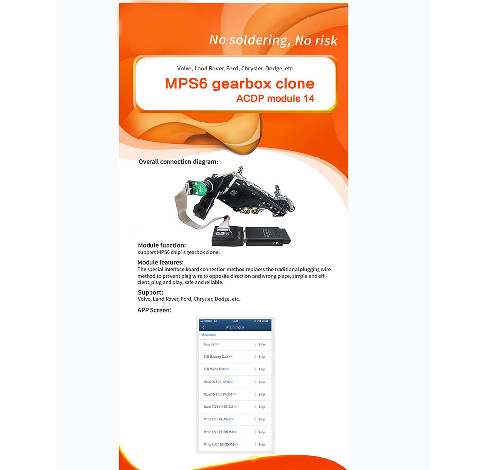 Yanhua ACDP MPS6 Gearbox Clone Module for Volvo, Land Rover, Ford, Chrysler, Dodge, ect, no soldering, no risk