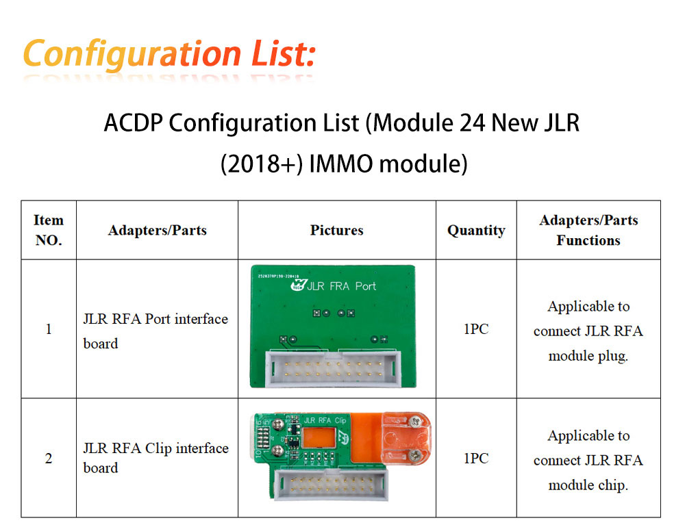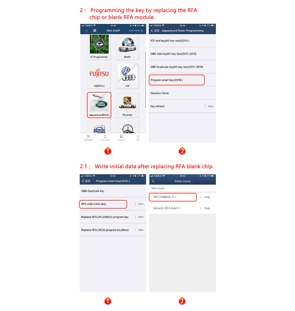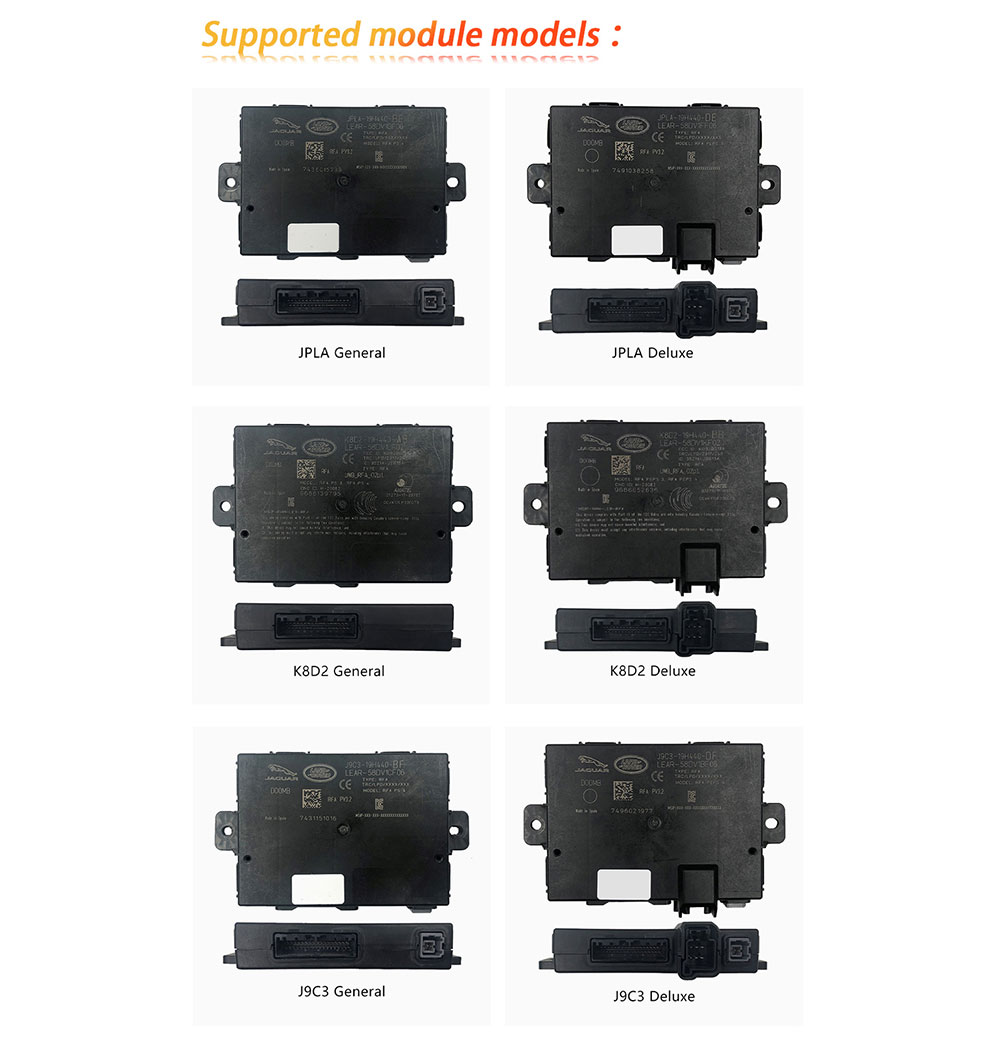 - Support the new JLR (2018+) program new key by replacing RFA blank chip or RFA module.