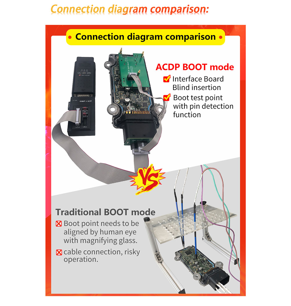 - The interface board can be inserted blindly to align with the boot test point, no need magnifying glass for calibration or complex probe workbench operation.